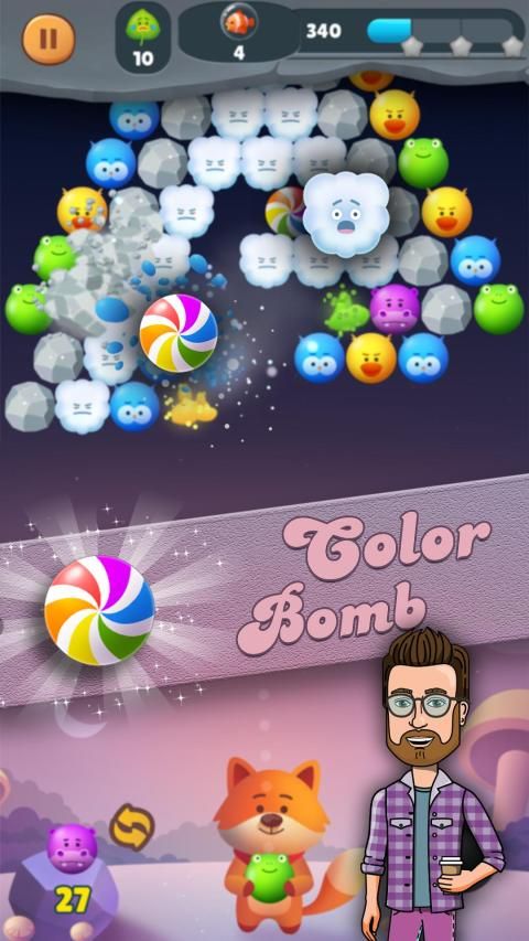 3. स्क्रीन के सभी बुलबुले स्तर को साफ़ करें, और प्रत्येक स्तर पर 3 सितारे प्राप्त करने का प्रयास करें।
