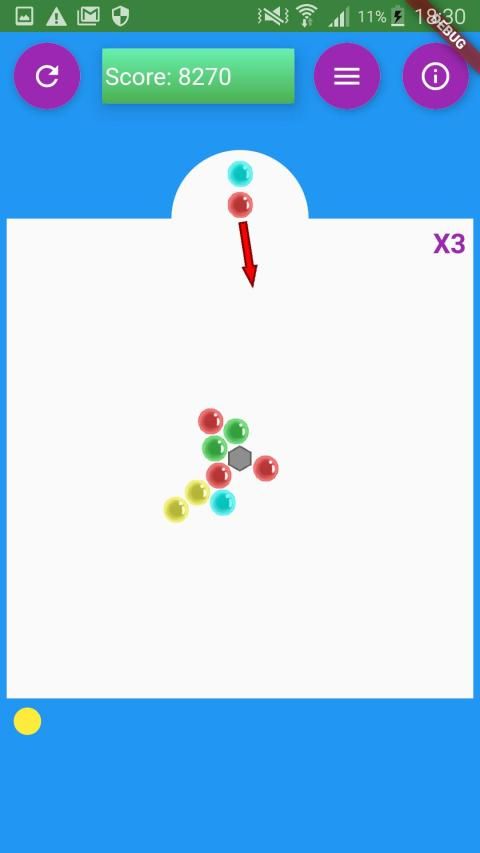 Try to remove all bubbles by making pairs of 3 or more of the same color to make them pop. The mass of bubbles will rotate upon the center when hit. If you pop all of bubbles your score multiplier will increase by 1 so that all future pops will be worth more points. Try to get the high score, good luck!