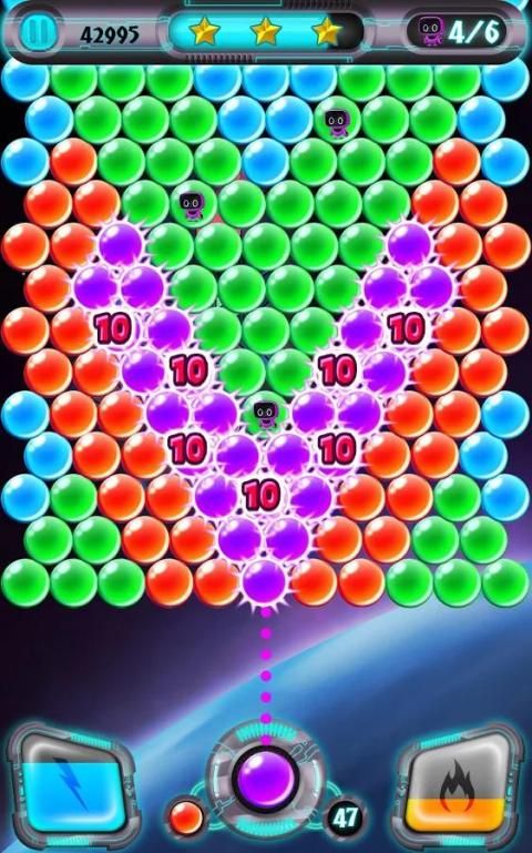 * बम - 10 बुलबुले या अधिक ड्रॉप एक तारों से बम कि बाहर आसपास के बुलबुले ले जाएगा कमाने के लिए।