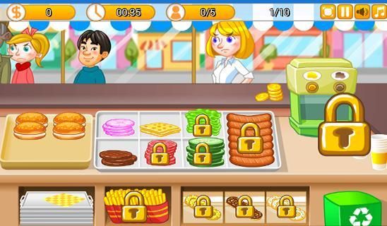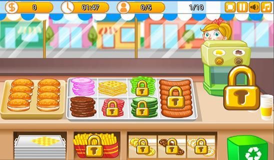 Run your burger shop and cook the finest burgers. Add the ingredients in the correct order to your sandwich and serve your burgers as fast as you can