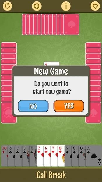 Call break classic card game free is a addictive and popular card game of tricks, trumps and bidding which is popular in India,Bangladesh and Nepal. Call break seems to be related to the North American game Spades and asian card game game call bridge.This game - Call break is played using a standard international 52-card pack. The cards of each suit rank from high to low A-K-Q-J-10-9-8-7-6-5-4-3-2. Spades are permanent trumps: any card of the Spade suit beats any card of any other suit.Deal and play are counter-clockwise.To succeed in Call break, a player must win the number of tricks called, or more trick than the call. If a player succeeds, the number called is added to his or her cumulative score. Otherwise the number called is subtracted.