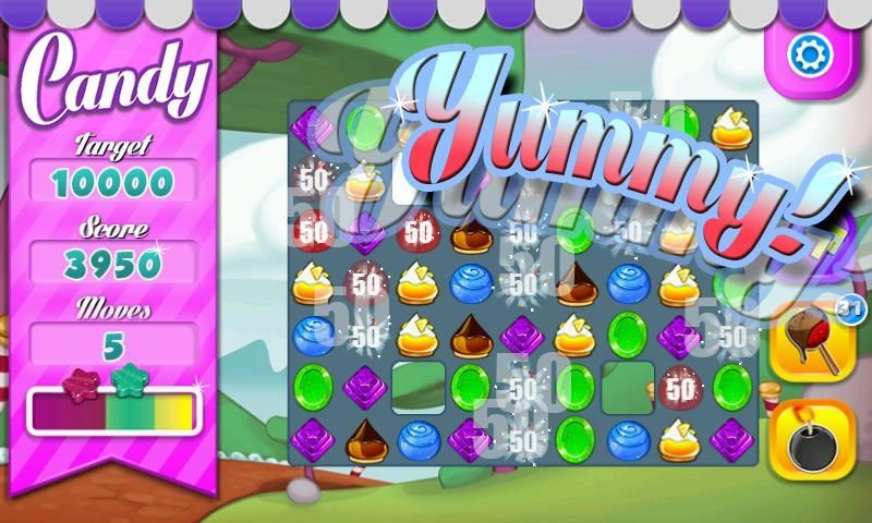 Candy is an amazing game, of candy. If you like matching stuff and candies, then you will love Candy. Match your way throughout 85 levels. Test your puzzle skills and have lots of fun! You also have power-ups too!