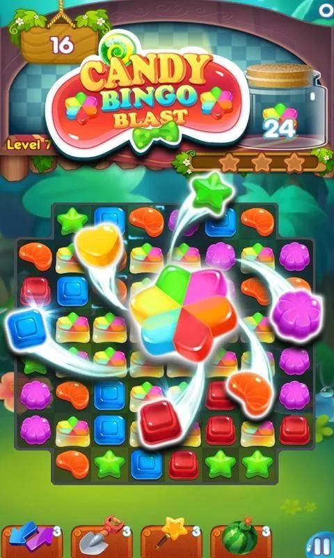 - मैच 4 या 5 या अधिक कैंडी कैंडी बिंगो, बिजली अप, कैंडी बम, बिंगो विस्फोट कमाने के लिए।