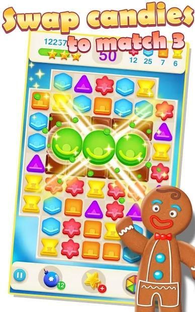 - स्वैप एक पंक्ति में 3 कैंडी मिलान करने के लिए इकट्ठा करने के लिए
