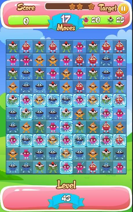 - एक ही समय में प्रत्येक पंक्ति के 3 एक ही कैंडी के साथ 2 लाइनों बनाने के लिए बिसकुट cliker क्रश, कुकी भूमि बनाई गई है