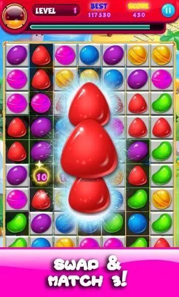 * Swap, crash, and match 3 candies of the same type to smash and win points.