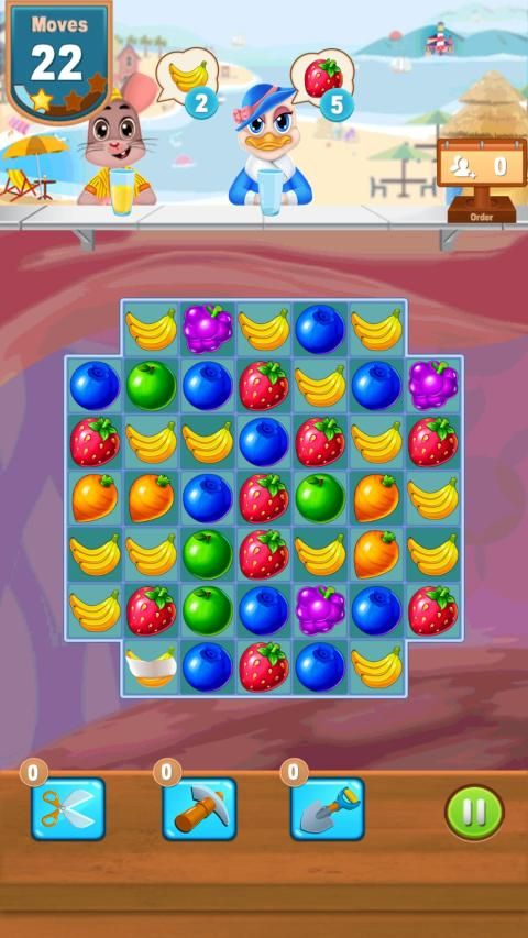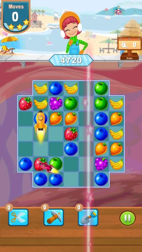 फल और कैंडी मिटाकर बिंदु प्राप्त करें। आप अधिक अंक प्राप्त करने के लिए फलों और कैंडी की लंबी श्रृंखला बना सकते हैं!