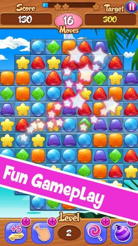 Match candies and collect them. Create rows of columns of 3 or more Candies of the same color to collect or blow them.