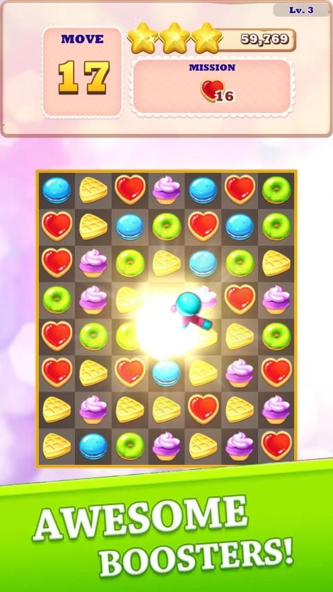 - Swipe and match 3 candies of the same color to blast and win points