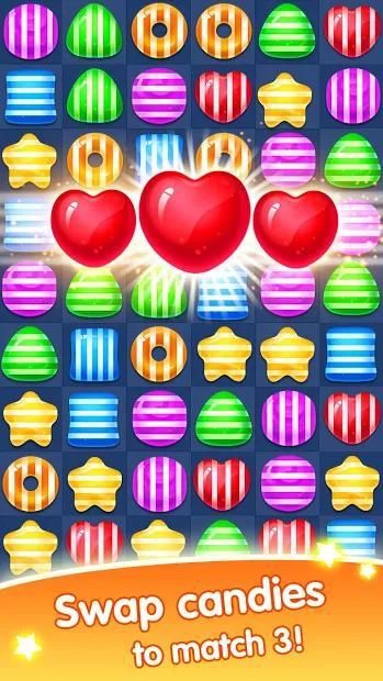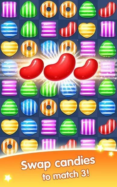 Switch and match your way through hundreds of levels in this delicious puzzle adventure, Combine 3 or more sweet candies of the same to create splash and make the lands become candy paradise!