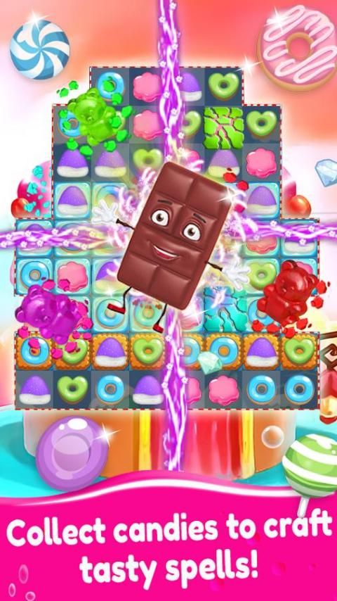 ● उन्हें विस्फोट करने के लिए पंक्ति में एक ही रंग के साथ 3 कैंडीज की व्यवस्था।