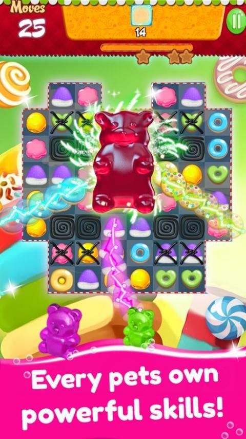 Find the shinning stars and get it! Solve all the puzzles and try to get three stars in each level! Have fun in this sweetest candy game adventure!