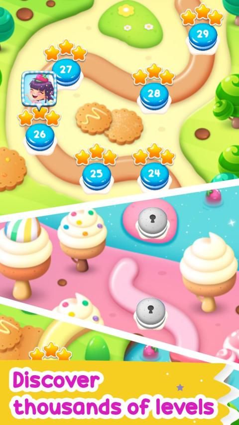 ★ Hundreds of Candy Sweet Match 3 puzzle levels and 1000 initial levels.