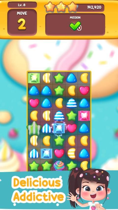 ★ Highly Addictive Sweet Candy Mania Match 3 puzzle game.