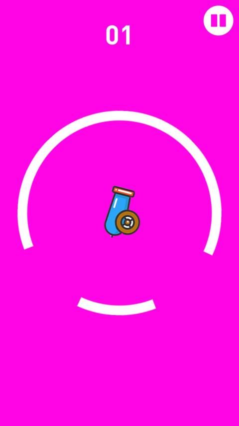 कठिनाई के विभिन्न स्तरों के साथ विरोधियों में से प्रत्येक के आगे, सही समय पर तोप फायरिंग करके तोप को सर्कल से बाहर ले जाने की कोशिश करें।