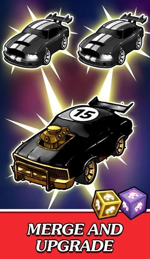 रास्ते में समान स्तर की कारों को मिलाएं, उच्च-स्तरीय कारों को अनलॉक करें, और रहस्यमय उपहार बक्से को छोड़ दें।