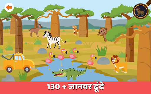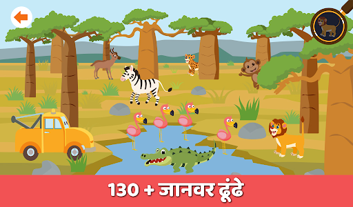 झाड़ी के पीछे वहाँ देखो! क्या यह एक घोड़ा या ज़ेबरा है? 2 से 5 वर्ष के बच्चों के लिए एकदम सही; कार गश्ती के साथ जांच और दूरदराज के जंगलों में रहने वाले जानवरों के बारे में जानें। दुनिया के सबसे बड़े वन्यजीवों और नन्हे जीवों की खोज करें।