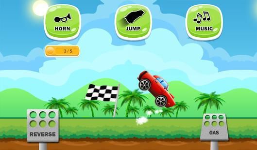 if your children love all things cars and racing, then this is a game which they will love. a simple car racing game for young children and toddlers between the age of 2 and 7. big buttons make it easy for the child to play the game, including the horn, jump, music accelerate and brake. no difficult obstacles so the child can always reach the end of the level. the car wont flip!