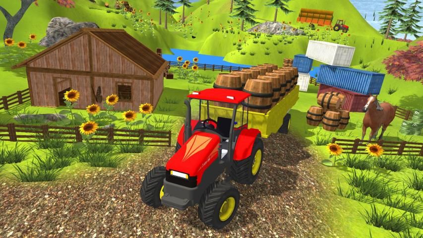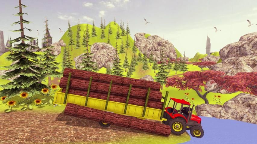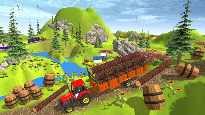 with realistic mountain and sweet chirping of beautiful birds.This cargo tractor trolley driving simulator & farming simulator