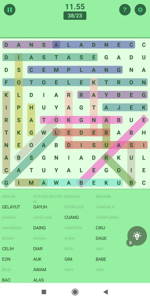 यह खेल काम या पढ़ाई से थक जाने के बाद आपको खाली जगह या केसुनटुक में भरने के लिए किया जाता है। यह खेल एक यादृच्छिक शब्द को सार्थक शब्द में पढ़ने की गति को कम कर सकता है। खेल में उपलब्ध भाषाएँ इन्डोनेशियाई, मलेशियाई और अंग्रेजी हैं।
