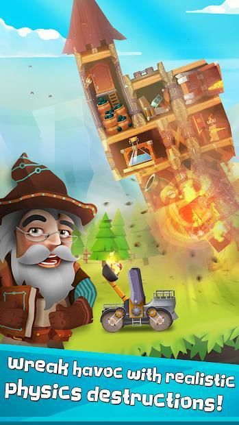 - Directly control your catapult attack and wreak havoc with realistic physics destructions!