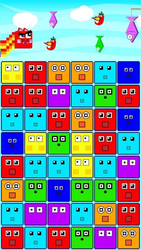 Fun and interesting game. You have to play for a cat, catch fish and at the same time collect squares of three in a row. How many points will you be able to earn?