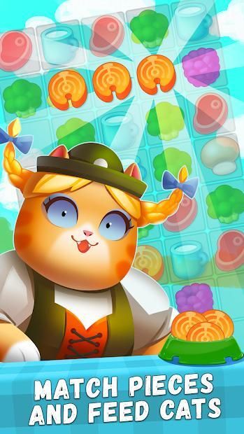 Simple and clear game play! Connect food pieces of similar type and feed our lovely cats!