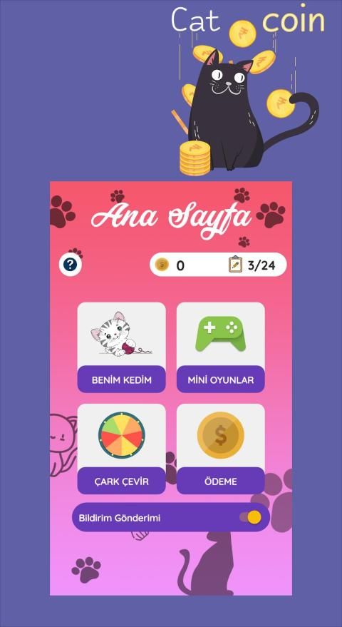 Oyunumuz sizlere günlük 24 adet görev sunmaktadır, bu görevler kedinizi beslemek, susadığında suyunu vermek ve oyun vakti geldiğinde oyun oynamayı ifade eder.