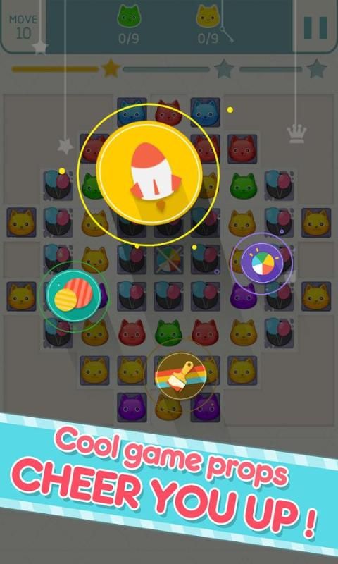 - मैच रंगीन बिल्लियों बनाने के लिए एक लाइन पर 5 बिल्लियों!