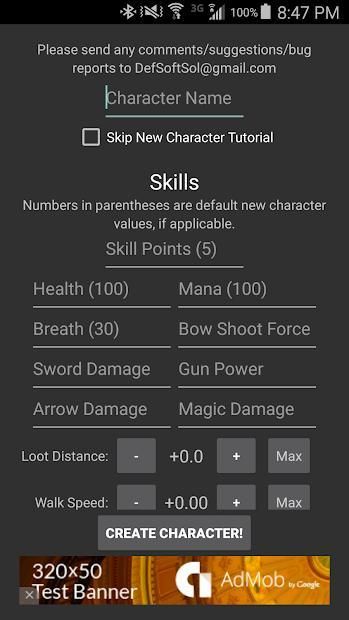 बस एक चरित्र का नाम दर्ज करें, तो, अपने वांछित शुरुआती कौशल (खेल चूक में लिए खाली छोड़ दें) में भरने शुरू आइटम का चयन करें, और create.It के लिए क्लिक करें कि आसान!