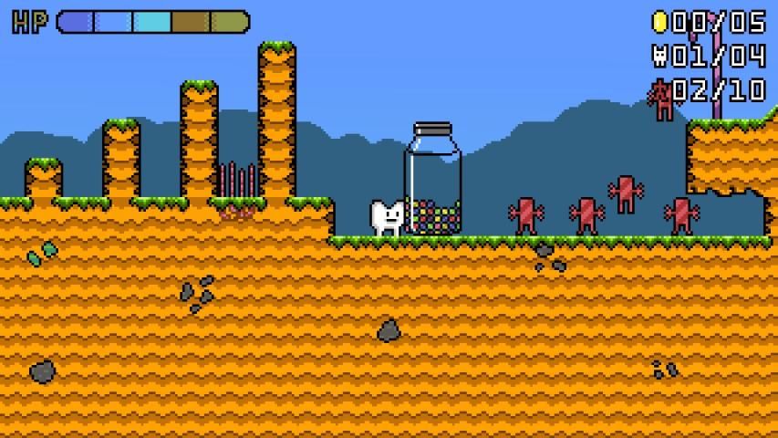 Unlock each levels exit by collecting baby teeth and defeating sugar monsters.