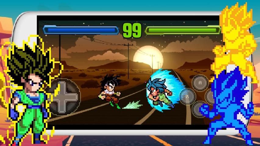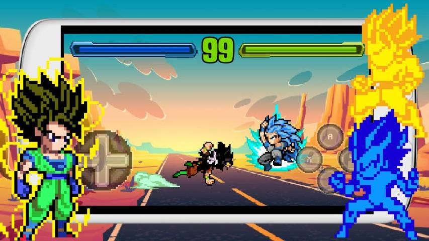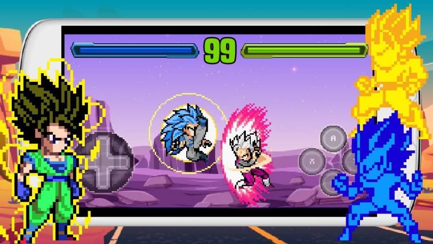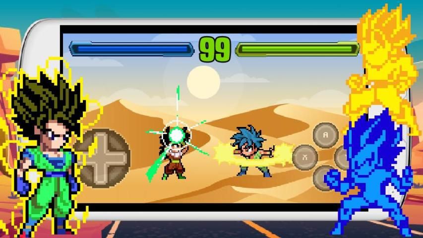 Pixel saiyan fighting game with unlocked over 50 characters, dragon saiyan team on new arena tournament.