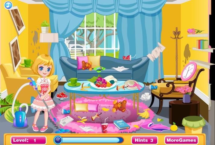 Properly flush out toilet and close the tap. Dirt free the swimming pool and fill it with fresh water. Use washing machine to wash clothes and hang them to dry. Prove yourself a pro cleaner and clean the entire palace. Make the princess’ house beautiful so she can enjoy living with her mom and dad. Arrange everything in the living room because our little princess wants to have a party with her friends.You don’t have to wait until Spring to give your house a good cleaning! In House Cleaning Day, clean up your house and get rid of the things you don’t need. Clutter has got to go so you can give your house a beautiful makeover. First, clean up all the rooms of your house from the kitchen to the bedroom. Wipe up dust, vacuum the floors, and throw away junk! Leave nothing dirty and fix anything that’s broken.