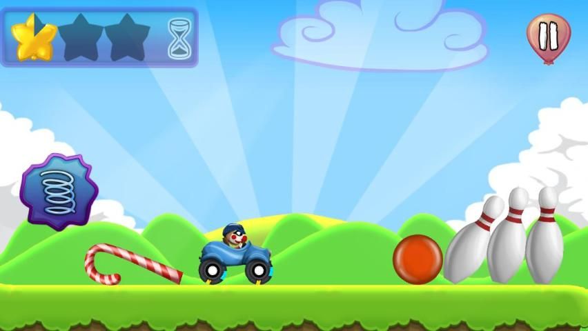 Drive the clown with his crazy car to his tent in this fun car racing game. Clear the obstacles and stunt jumps to reach the goal in each level. Let the mayhem begin! But beware not to explode the clown head!