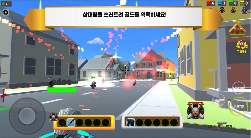 상대 팀을 무찔러 획득한 골드로 상점에서 총을 구매하세요