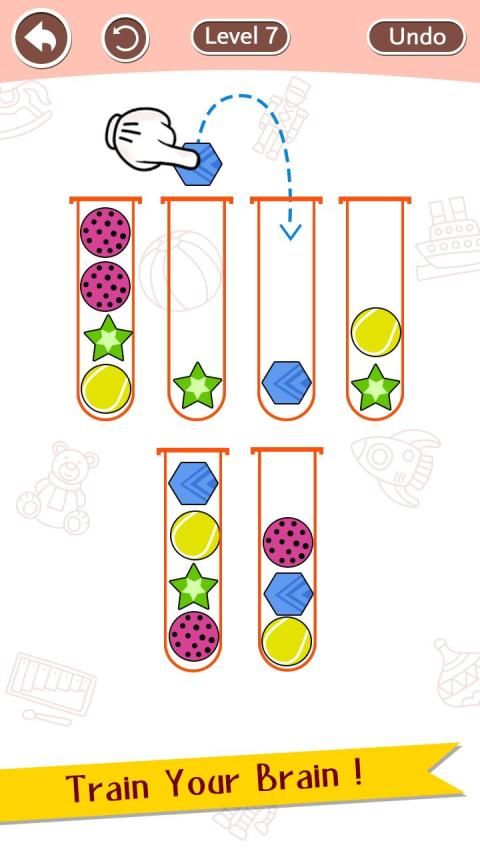 इस पहेली खेल को खेलते हैं और गेंदों को छाँटने में मज़ा आता है।