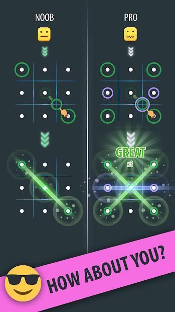 * लंबवत, क्षैतिज और विकर्ण रेखाओं पर रंग के छल्ले व्यवस्थित करें और ढेर करें।