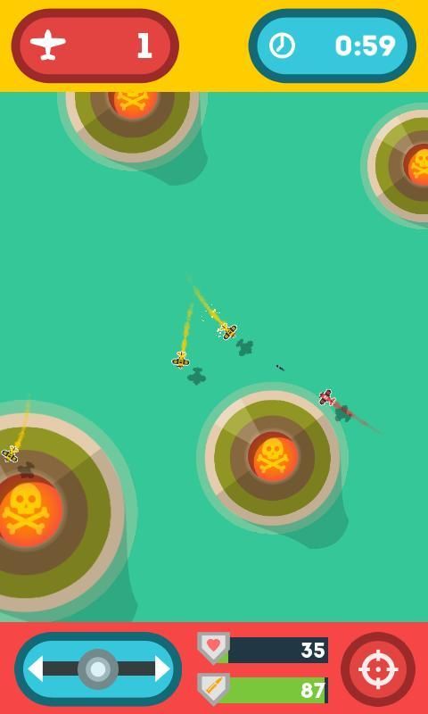 » Choose a side of phone (dogfight mode). If you play on the upper side you will be the yellow plane, if you play on the bottom side you will be the red plane. Keep an eye on your fighter, the planes are small so that two players can play on the same device.