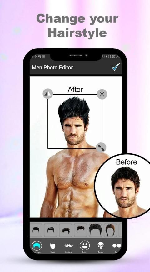 Cool Men Photo Editor, Men Hairstyle Editor is the best photo editor for men, with different kinds of hair, for a makeover.