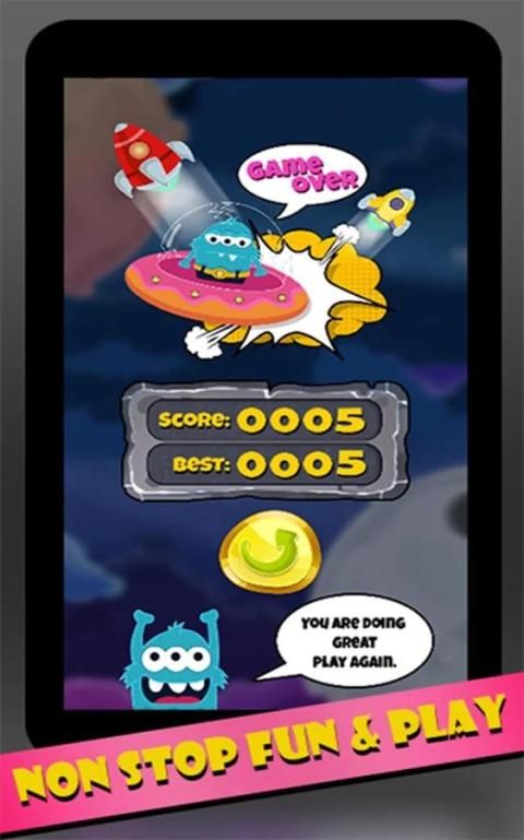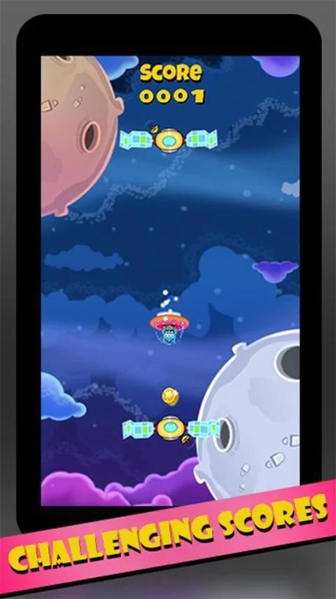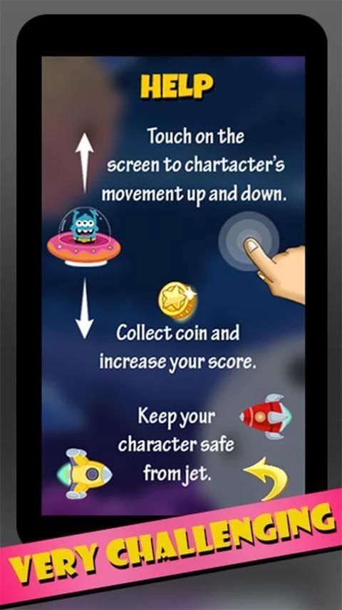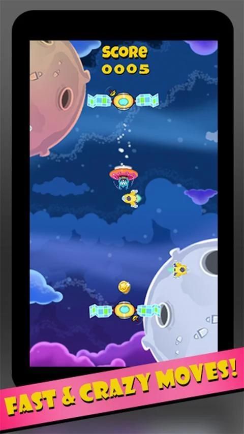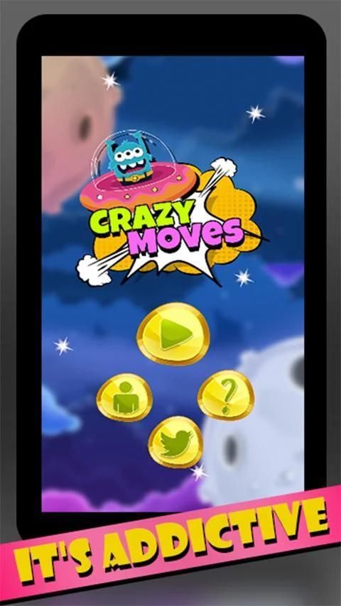 Crazy moves is going to be very addictive game in all over world. This is a creative game with many moves. You can play anywhere with your minimum time consume and make your scores. Awesome graphics, particle effects, golden coins collection in space from satellite view. Any time challenge to your friend to compete your scores. The game have monster UFO with particle effects, enemy jet fighter, golden coins collection with star effects, Satellite top view in portrait mode. Collect coin from two different planet's satellite. In between save your UFO from enemy jet fighter planes. Fun, addictive with high quality sound effects.