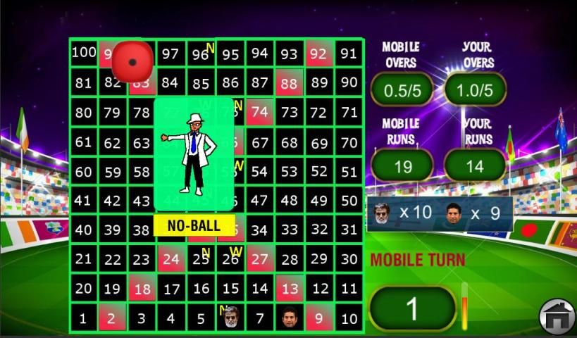 बोर्ड पर "OUTS", "NO BALLS" और "WIDES" की संख्या अंकित की गई है। खेल का उद्देश्य एक गेम के टुकड़े को नेविगेट करना है, डाइस रोल के अनुसार, स्टार्ट (बॉटम स्क्वायर) से लेकर फिनिश (टॉप स्क्वायर) तक, क्रमशः WIDE BALL, NO BALL AND OUT द्वारा मदद या बाधा।