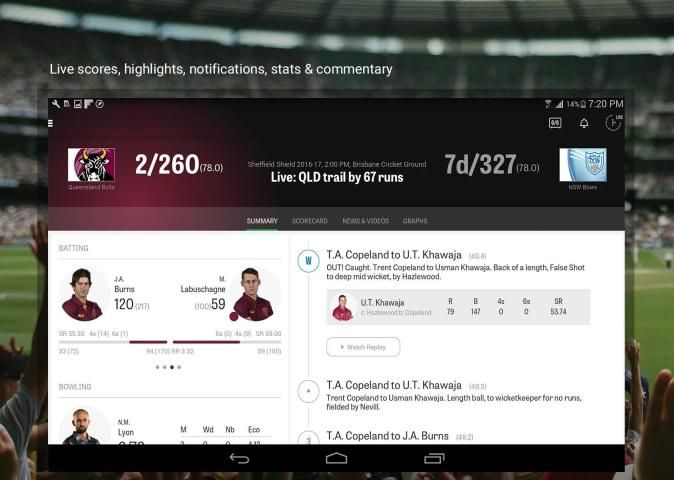 - Live scores of International Cricket and major domestic tournaments including the IPL and BBL