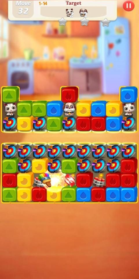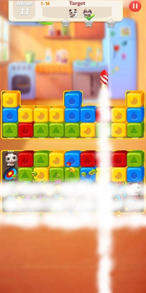 ♥ विस्फोट करने के लिए एक ही रंग के किसी भी 2 आसन्न क्यूब्स पर टैप करें।