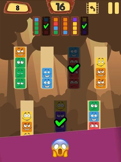 एक ट्यूब से दूसरे ट्यूब में cubes खींचें। ट्यूबों को cubes के साथ भरें और लक्ष्य कार्ड के साथ मैच!