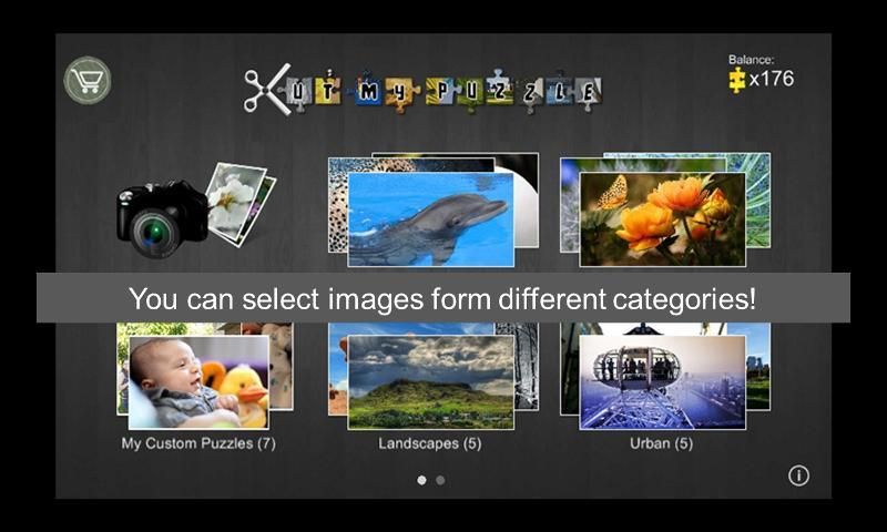 • अपने फ़ोन के कैमरे का उपयोग कर मौके पर तस्वीरें ले लो, या नए और कस्टम पहेलियाँ बनाने के लिए अपने एल्बम से फ़ोटो का उपयोग