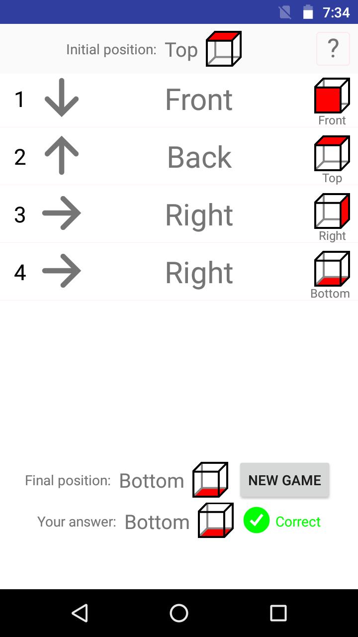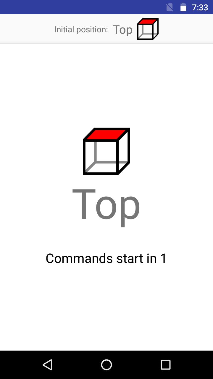 • If the third command is RIGHT, the cube should be tipped over it's right bottom edge and the red side is the BOTTOM side.