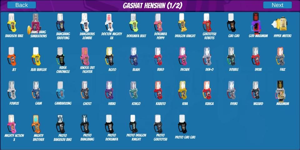 3. सूची Henshin Gashat पर क्लिक करें और एक का चयन करें।