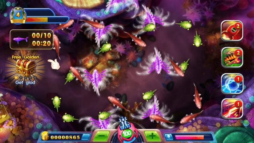 Click on screen any place to launch nets, how much score of fishing nets cost how much gold,in general shell is never lost.