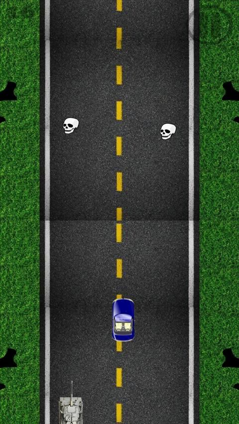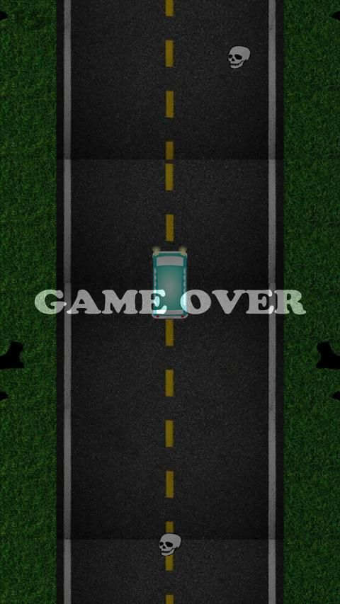 It's simple to play but hard to master. Use the arrows on the screen to move your car left or right and press the brakes to apply brakes while racing.That all. Do not forget to collect jerricans for more time, and skull-heads to get points.