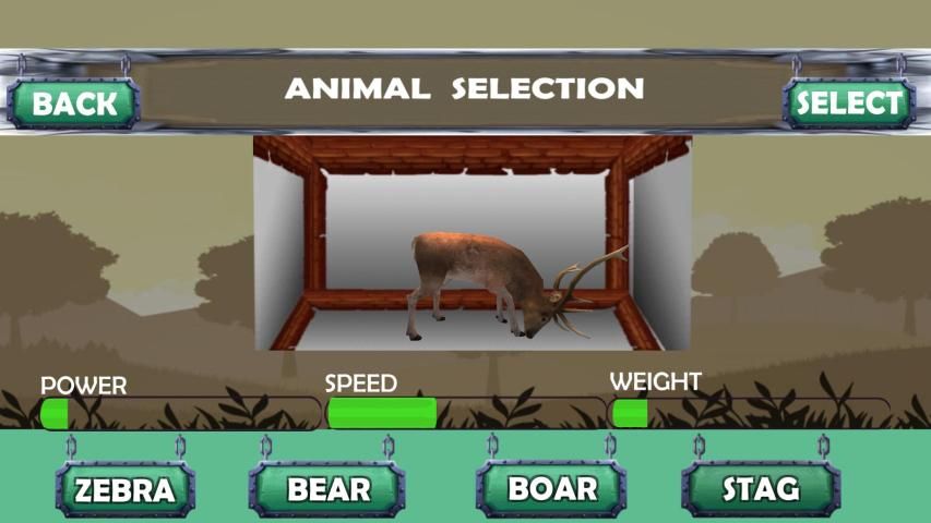 There are a number of wild animals in search of their prey in the jungle. You have to select an animal from Wolf, Fox, and Deer to hunt.